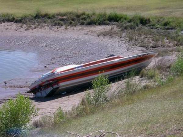 That's where that cruiser is, in the lagoon at Needles Marina!..   The bummer was he had full tanks and he lost quite a bit of fuel, sure stunk in the morning!.