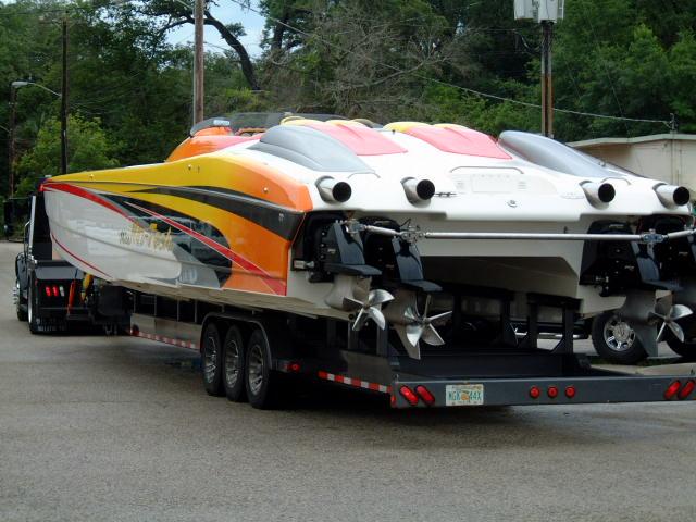Yes....4/ 925 HP Blower motors .....4 #6 drives...outboards cut down...Inboard engines are on crash boxes....The guy who owns this boat also owns a brand new 50 Nortech Cat with twin Turbine engines as well