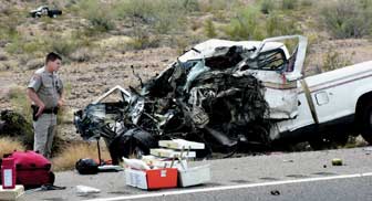 Emergency personnel at the scene said the 35-year-old man received massive injuries after the 1982 Ford Ranger pickup truck he was driving struck a rig pulling an enclosed trailer. DPS officers said initial investigation revealed that the Ranger was northbound when it veered into the southbound lane and struck the large truck, which was traveling in that lane.