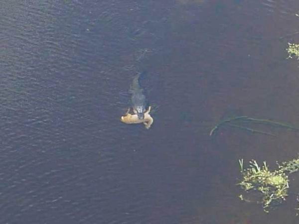This was taken by a KTBS helicopter flying over Cross Lake! (For those of you who are not local, Cross Lake is in Shreveport, La.) That has to be a HUGE gator to have a whole deer in its mouth! Are you ready to go skiing on Cross Lake?! If you ski at the west end of the lake -- try not to fall. Â