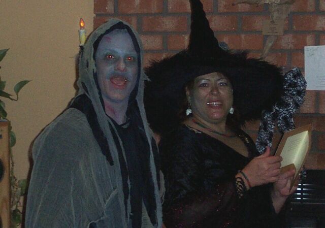 So we went to an Wedding Anniversary party on Saturday before Halloween. Our freinds got hooked 5 years ago and had a Halloween wedding costumes and all. Here's the lovely couple this year