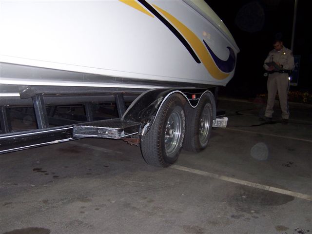 | Quote (brokedown @ Nov. 16 2005,2:17 pm) | | After a day of boating on Sunday at Elsinore, my family and I were on our way to Chilis to grab a bite to eat, when out of no where a newer model white Toyota Corolla spun out and T-Boned my trailer with the boat on it! To top it off the SOB took off and fled the scene! |