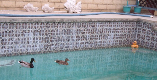 A few years ago we had a couple of ducks that decided make our pool their home, man what a mess that was Took a month to get rid of them!.