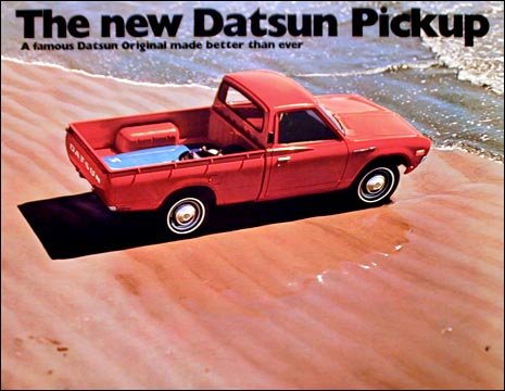 | Quote (BarryMac @ May 09 2006,7:11 am) | 1973 Datsun P/Up, 2000cc motor, dual side draft Webers, exhaust, slammed, this mofo ran like nobody's business, would pull low 15's in the 1/4 mile even though it looked like a POS...  |