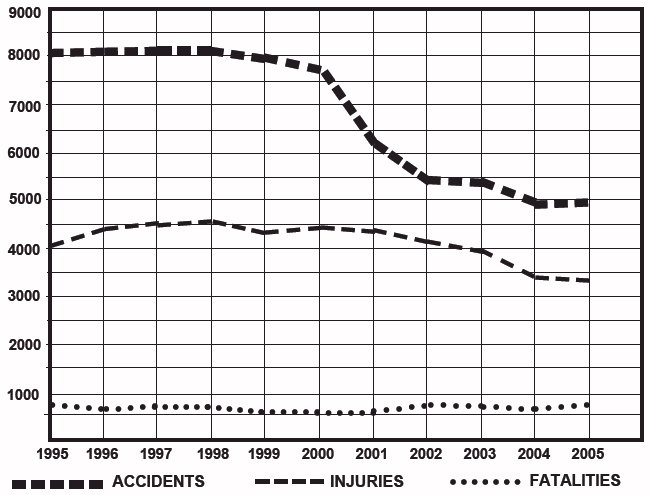 ''In 2005, states reported a total of 12,942,414 registered recreational boats compared to 12,781,476 in 2004. The 4,969 boating accidents reported in 2005 reported 697 fatalities, 3,451 injuries and $39 million in property damage.''