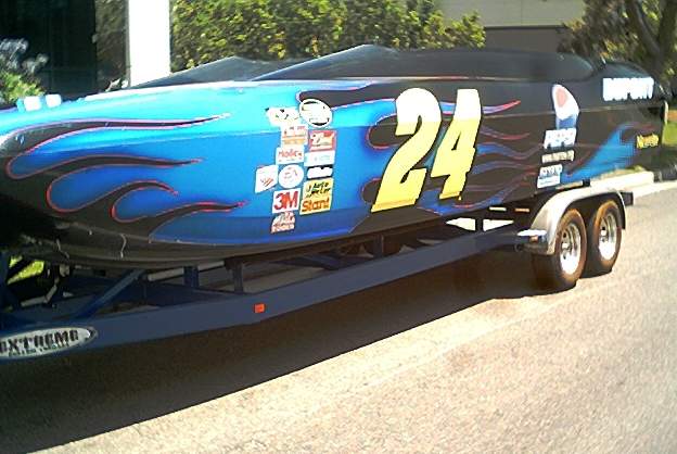 It's goin' via transport with the Ron Gillian boat... "Something & Someone" gets to haul the 22'...