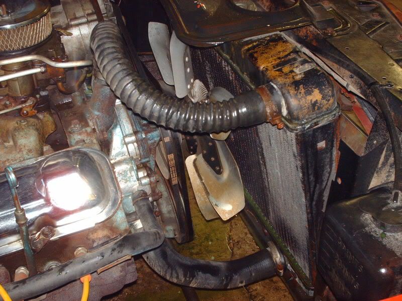 They say it was a good luck day, well note to one self, when working on car, make sure you put all bolts back in place before test drive.LOL I forgot to put the bolts, that hold the rad. in place, oppps, and when I got the trips to all open on time, bang!!! I just remember somthing that I forgot to do. yup fan went into the rad. what a mess.LOL Oh well, it's part of hotrodding.