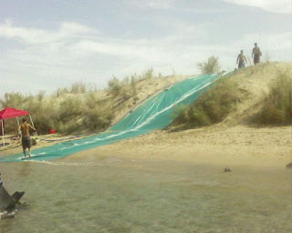 They set it up on one of the small bluffs and it ran all the way down into the river. The kids all had a blast all day long.