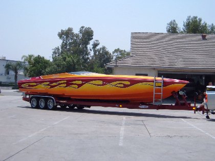 We've got two of the 40' Cats, two 36' Coupes, 2 33' Daytonas waiting for carrier shipment, a 27' Fundeck headed to Canada tomorrow, a 33' Daytona headed to Tahoe on Saturday, about ten boats in Service....