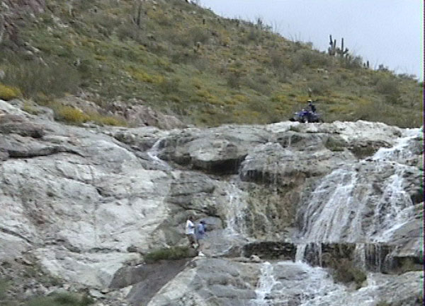 Nope thats not it, if you go up behind the city, off of Bison road, the pavement ends and go off into the desert on a dirt path around a big hill, one lane, and then on the back side of this hill, go about 2 to 3000 feet and off the the left is a drop off, and you will see trails going down it to a river bed, go east up the river bed about, oh i don't know maybe 2 to 3 miles maybe, My gps said I had climb up 2500ft, and there was lots of water flowing, there were other 4x4 and jeep back there to, I had alot of fun, but I have no pic's to reflect by to.