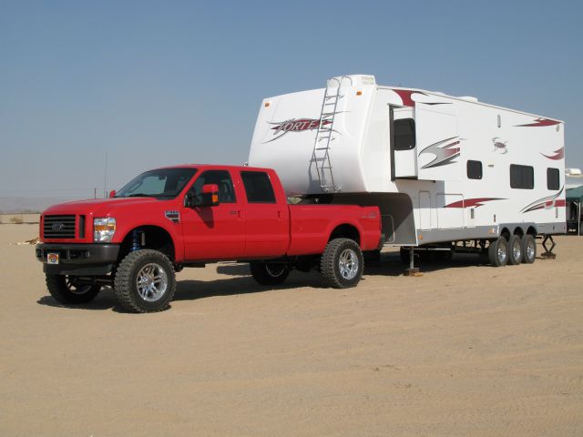 On the way home from Ocotillo we saw a lifted F350 with a fiver that had the axles flipped. Towed pretty level, but it sure does look a bit hinky so high up there.