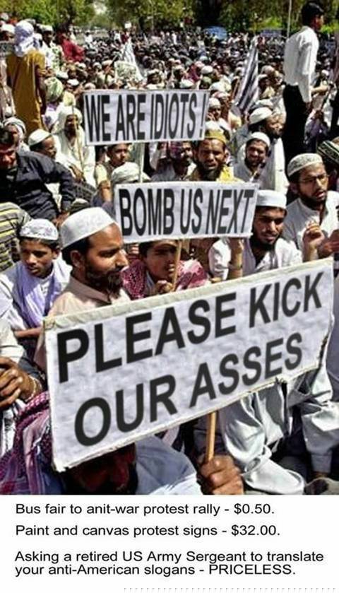 So, how do a group of Syrian protest leaders create the most impact with their signs by having the standard 'Death To Americans'(etc.) slogans printed in English?