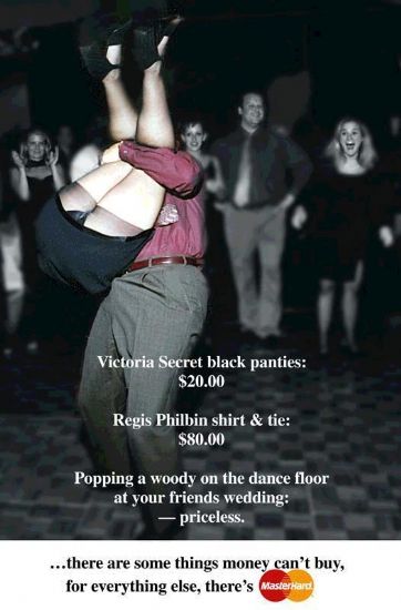Geezus; those "priceless" dealios get da gig a-gigglin' almost everytime he sees one! BTW; the actual story behind that pic is that she was makin' a deposit. That "act" costs around $100 downtown. Â Uh, so da gig is told.