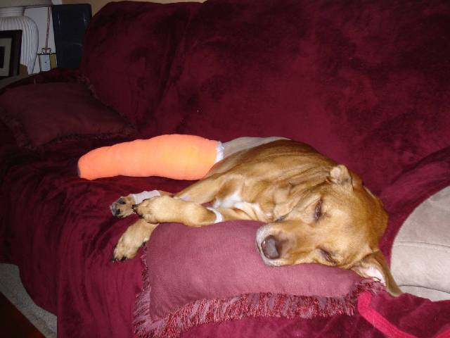 Boy, what a night. Since he's not supposed to climb stairs I took the first shift and slept downstairs with him the first night. Wasn't bad at all since he was still pretty loopy from the drugs. Last night my youngest wanted to stay down there with him so we let her. Mistake.
